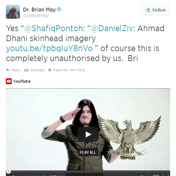 Hingga kini belum ada tanggapan dari Ahmad Dhani mengenai lagu ini. Begitu juga Brian May apakah akan menuntut frontman Dewa 19 ini atau tidak.