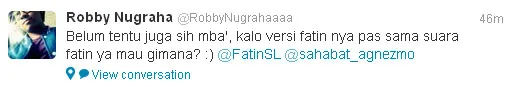 Dengan santai dan rendah hati, Fatin membalas kritikan tersebut. Dia mengatakan bahwa perbandingan antara dirinya dengan Agnes masih bagus Agnes dalam membawakan lagu Paralyzed.