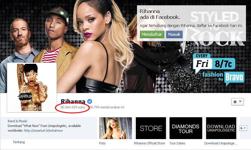 Congrats! Fanpage Facebook Rihanna Jaring 80 Juta Like