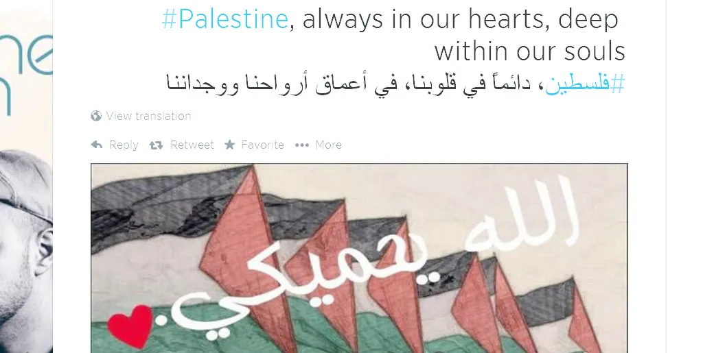 "Ya Tuhan kami meminta kepada-Mu untuk memberikan kedamaian dan kebebasan untuk rakyat Palestina," ujarnya di Twitter baru-baru ini.
