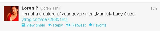 Bukannya patuh, GaGa malah berteriak dari atas panggung, "I'm not a creature of your government, Manila!", yang berarti, "Aku bukan robot pemerintahan-mu, Manila!" dan langsung disambung lagu Judas. Seorang penggemar bahkan mengunggah di Twitter dari akun pribadi @oren_ishii.