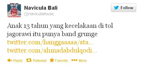 Kapanlagi.com - Band pengusung grunge asal Bali, Navicula tak menyangka jika putra Ahmad Dhani, Dul memiliki band grunge. Dia baru tahu kalo Dul yang mengalami kecelakaan di tol Jagorawi ini memiliki band grunge.