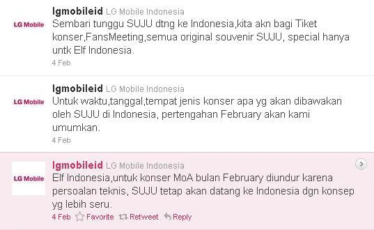 Melalui @lgmobileid, mereka menegaskan bahwa SuJu tetap akan datang ke Indonesia. Namun kehadiran mereka terpaksa diundur lantaran adanya persoalan teknis, termasuk dengan konser MoA yang awalnya digelar Februari.