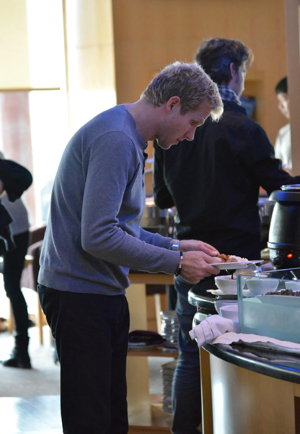 Jascha, sang vokalis langsung mengambil menu makan siang yang tertunda beserta kopi. Mie Goreng dan Ayam Goreng Singkawang menjadi menu pilihannya saat itu. Mikkel Lentz yang perjalanan kali ini membawa sang putra hanya menyeruput air mineral. Sementara Kaare yang membawa sang Istri juga ikut menikmati makan siang dengan sepiring buah segar. Setelah makan siang tertunda beres, mereka sedikit berelaksasi sembari bercengkrama dengan Promotor, Fullcolor Entertainment.
