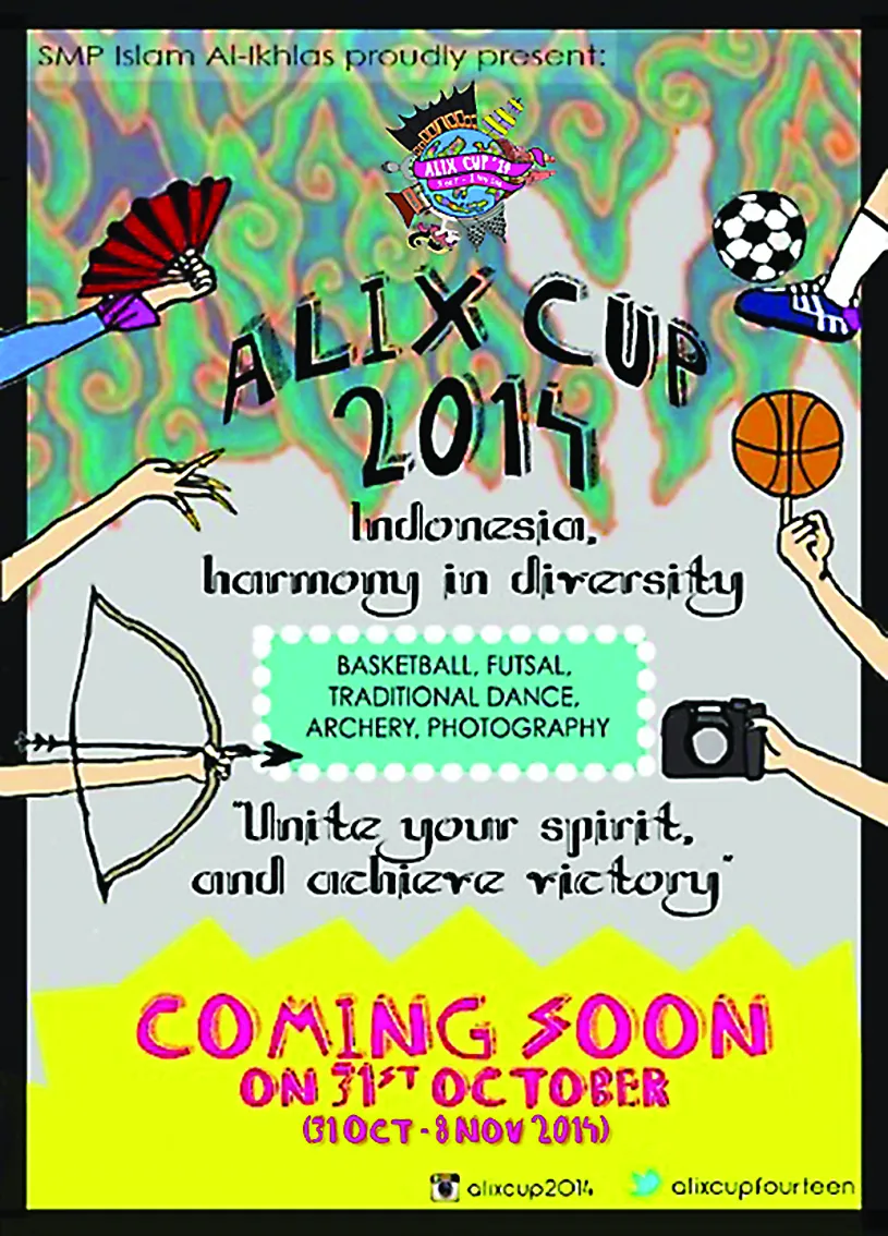Untuk keterangan lebih lanjut tentang gelaran ini, bisa hubungi langsung Rifat Ryan di nomor 081255255184 atau bagian TU, Bu Sari di nomor 021 – 7501462. Kalian juga bisa cari tahu lebih dalam lewat Instagram & ask.fm: @AlixCup2014, Twitter: @AlixCupFourteen, Youtube: Alix Cup 2014.